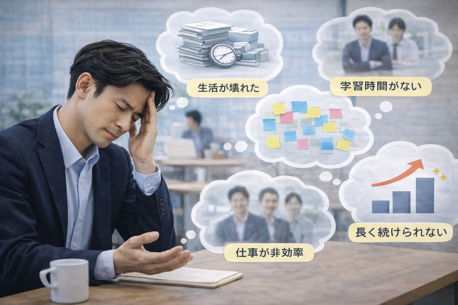 その一言で、僕の頭が真っ白になりました。僕が嫌だったのは「21時まで残る日がある」ことそのものじゃなかったんです。嫌だったのは、毎日遅いのに、遅い理由が“改善されないこと”。そして遅くなるほどミスが増えて、さらに遅くなる、みたいな消耗のループでした。