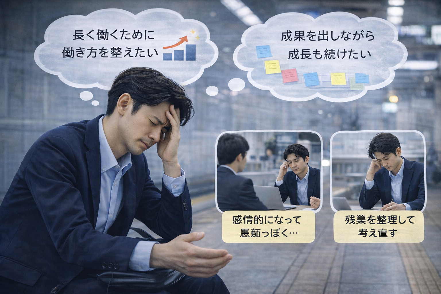 そこから僕は、ノートに書き出しました。残業が多くて困ったこと。生活で起きた変化。ミスが増えた理由。改善提案が通らなかった理由。書いていくうちに分かったのは、残業の問題というより、仕事の設計が“長く成果を出す形”になっていなかったということでした。