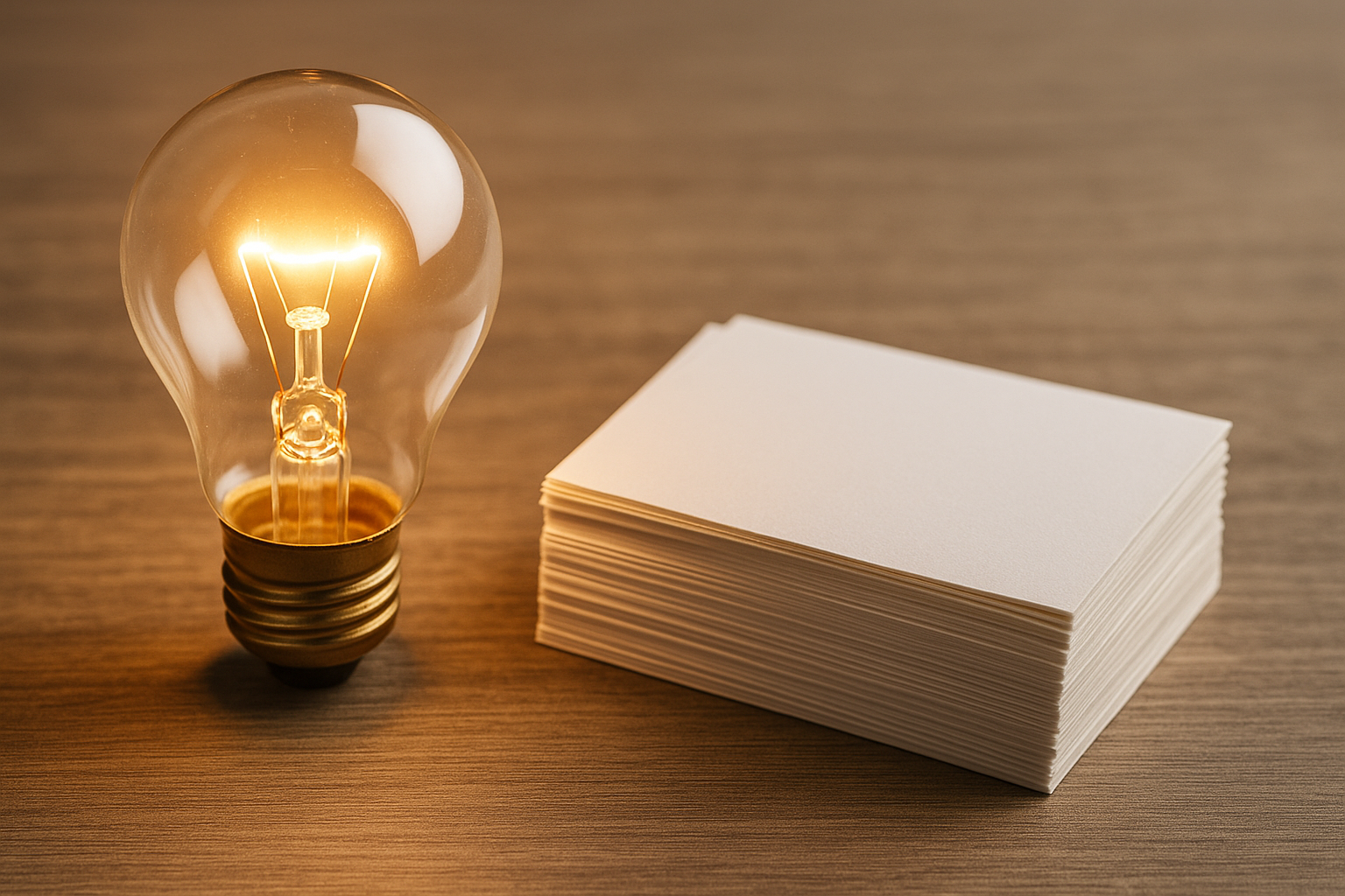 alt=”電球と白いカードの写真(疑問から気づきのイメージ)”