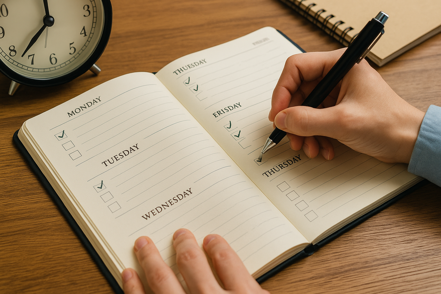alt=”ウィークリープランナーにチェックを入れている手元の写真”